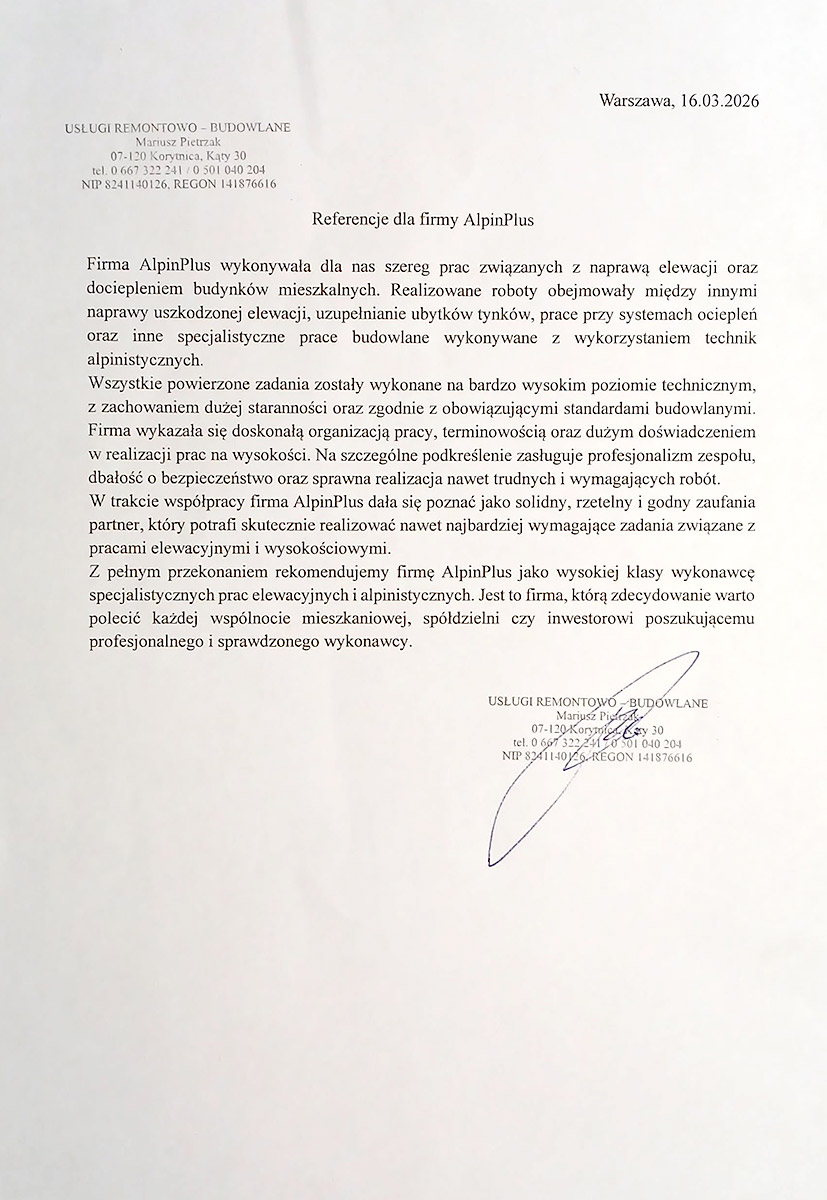 Jesteśmy firmą działająca na rynku od 2017 roku. Specjalizujemy się w pracach na wysokościach, usługach budowlanych oraz zadaniach wymagających precyzji i specjalistycznej wiedzy. Nasza praca to